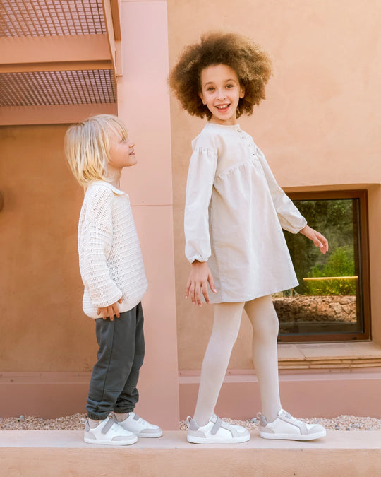 🦶🏼 Sola fina com zero drop para proteger cada passo sem afetar o desenvolvimento do pé.