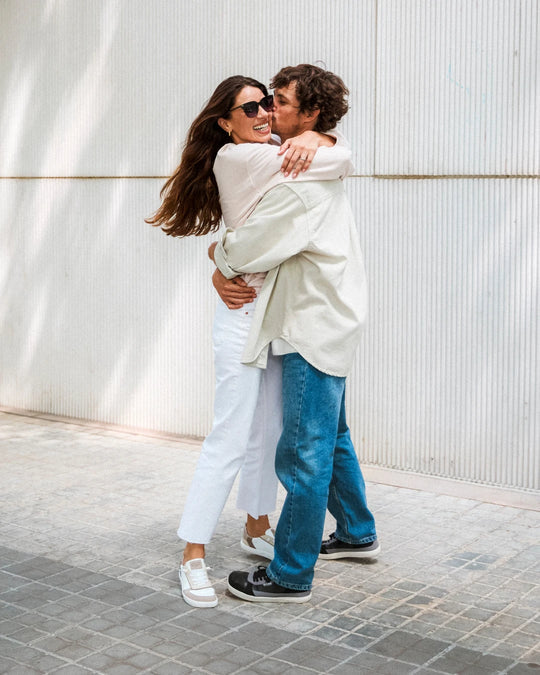 O modelo Petra da marca Muris é feito de 80% de materiais à base de plantas. O seu exterior é feito de resíduos de uva 🍇 e o seu interior é feito de milho 🌽.