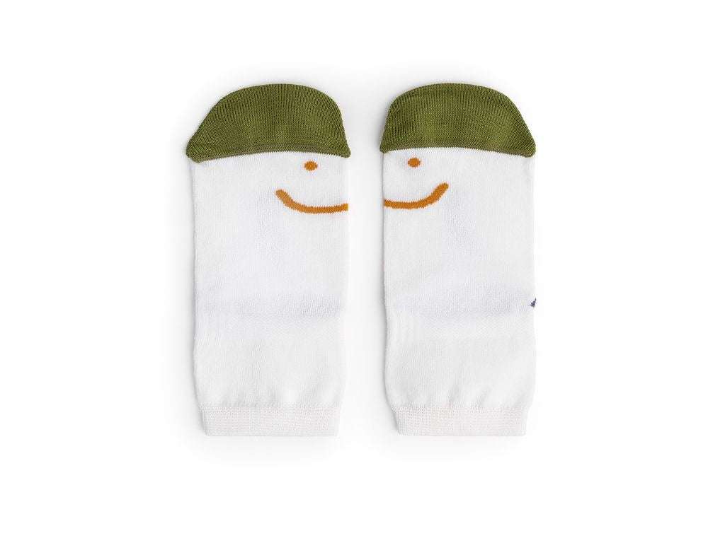 • As meias possuem pé direito e esquerdo. Para garantir o ajuste correto, certifique-se de formar um sorriso ao calçá-las!