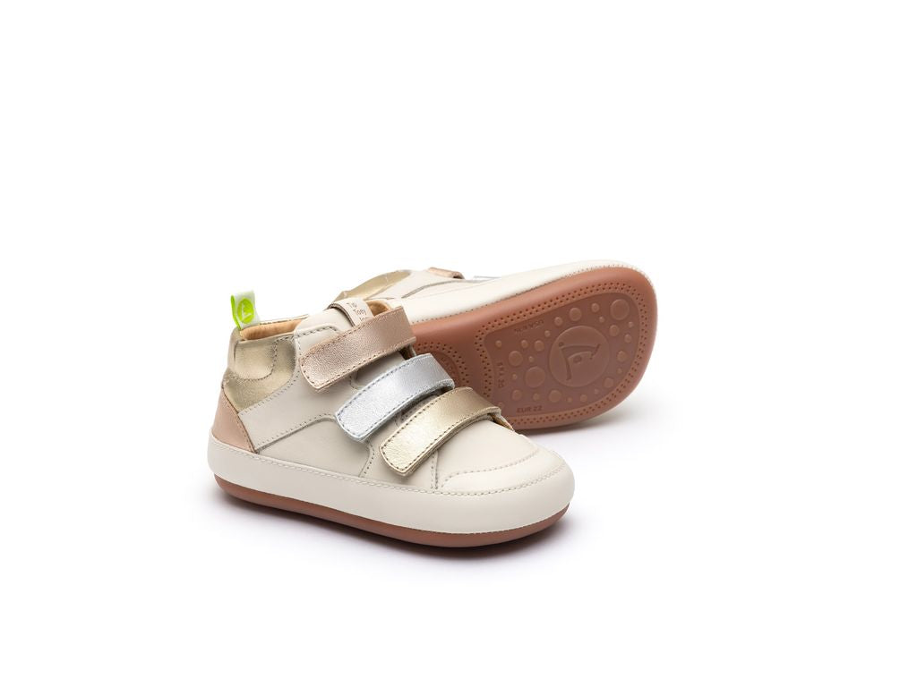 Com o seu triplo fecho em tiras e o cano alto, o METROPOLY inspira-se no estilo urbano, oferecendo ao seu bebé o conforto de um colo de mãe para dar os primeiros passos com os dedinhos totalmente livres.